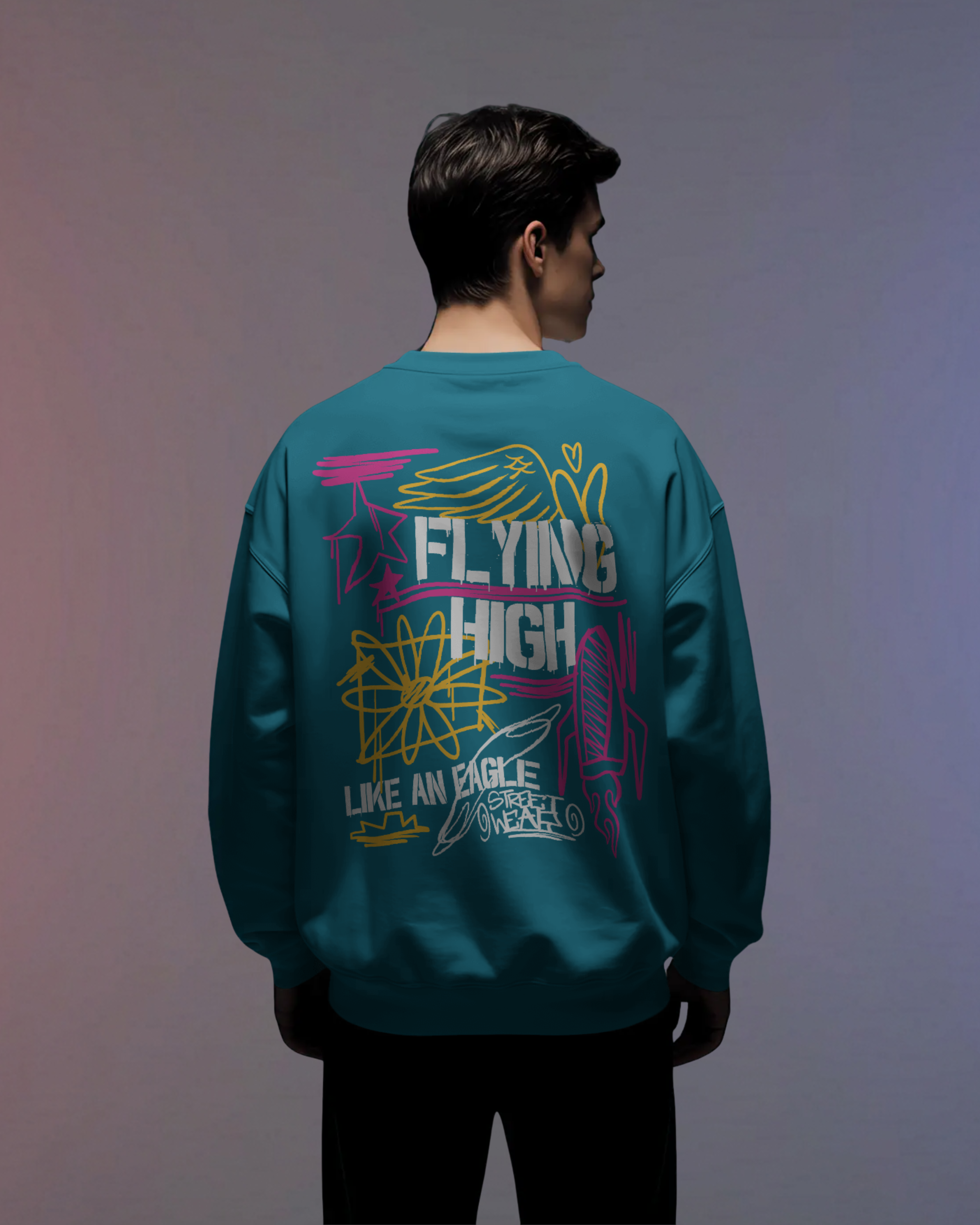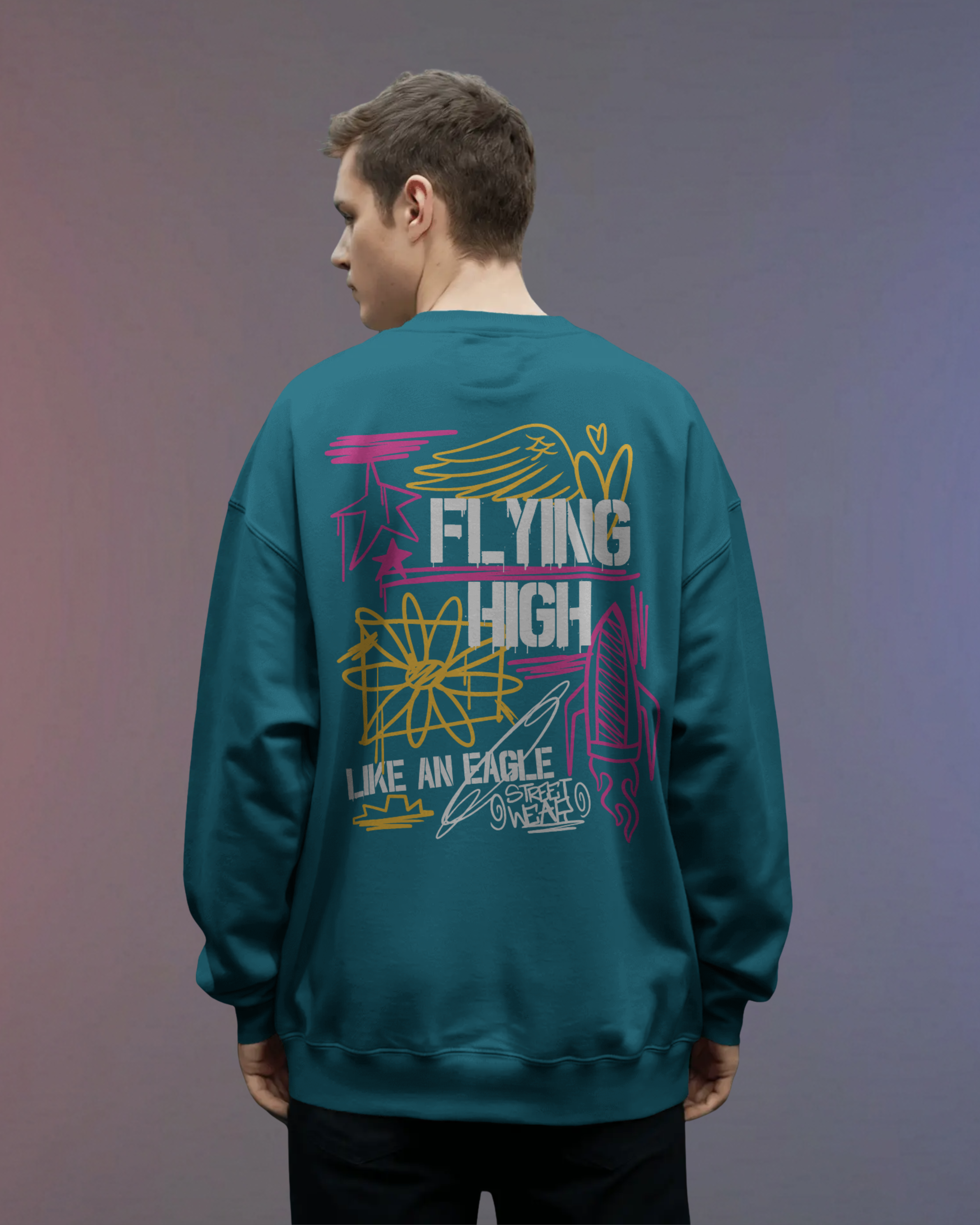 Flying High Street Style Sweatshirt (Vrystal Teal)